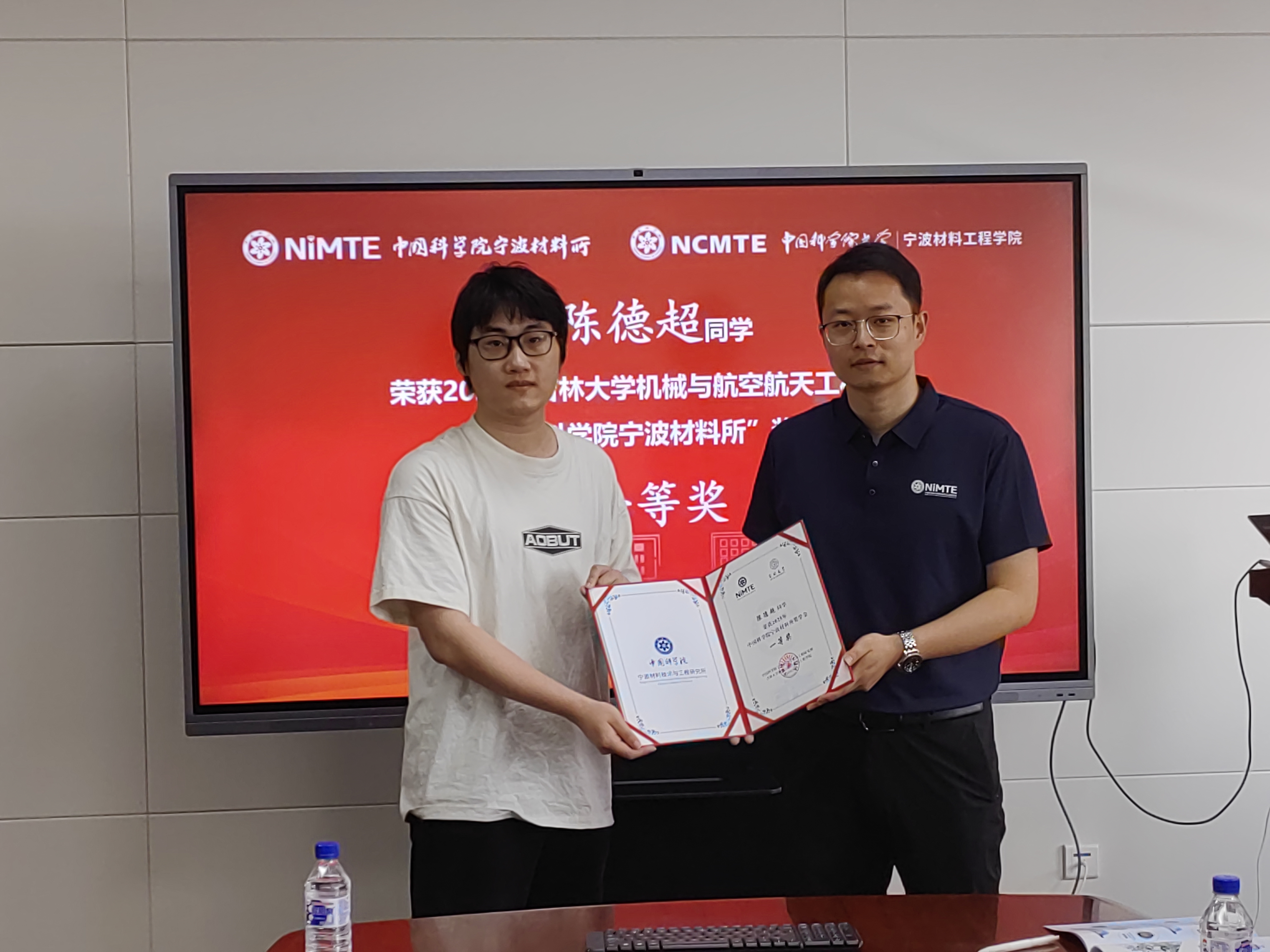 活动伊始,由李昂老师为陈德超同学颁发荣誉证书。据悉,该奖学金面向已被宁波材料所拟录取的推免生或统考生,经个人申报、公司审核及公示等严格程序,最终2021级机械工程专业陈德超同学为获奖者。