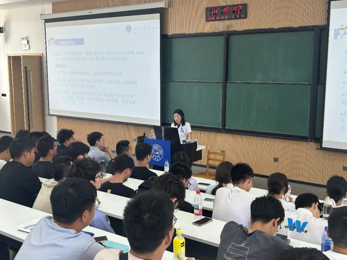 校医院刘雪松医生为新生带来健康教育讲座,系统介绍校园常见疾病预防、应急处理流程、各种传染病的传播和防治以及校医院各项服务,帮助同学们树立“健康第一”理念,为平安大学路保驾护航。