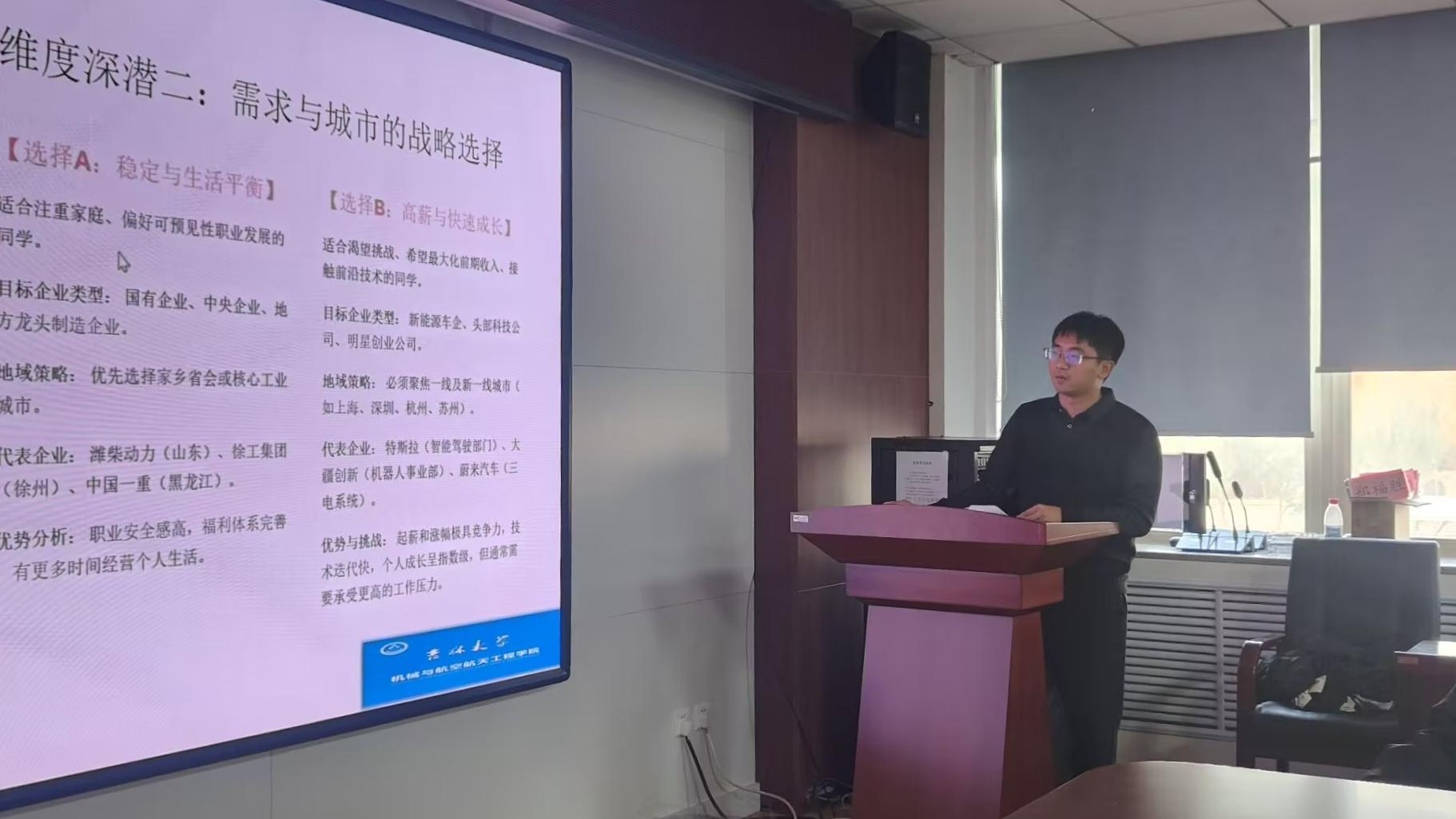 为帮助研究生明晰职业方向、提升就业竞争力,实现从校园到职场的顺利过渡,10月24日下午,古天乐代言太阳集团在逸夫教育大楼举办“机械研途职引未来”研究生就业规划专题分享会。本次活动由院研究生会组织,林家宇同学主讲,2024级、2025级部分研究生参与交流。