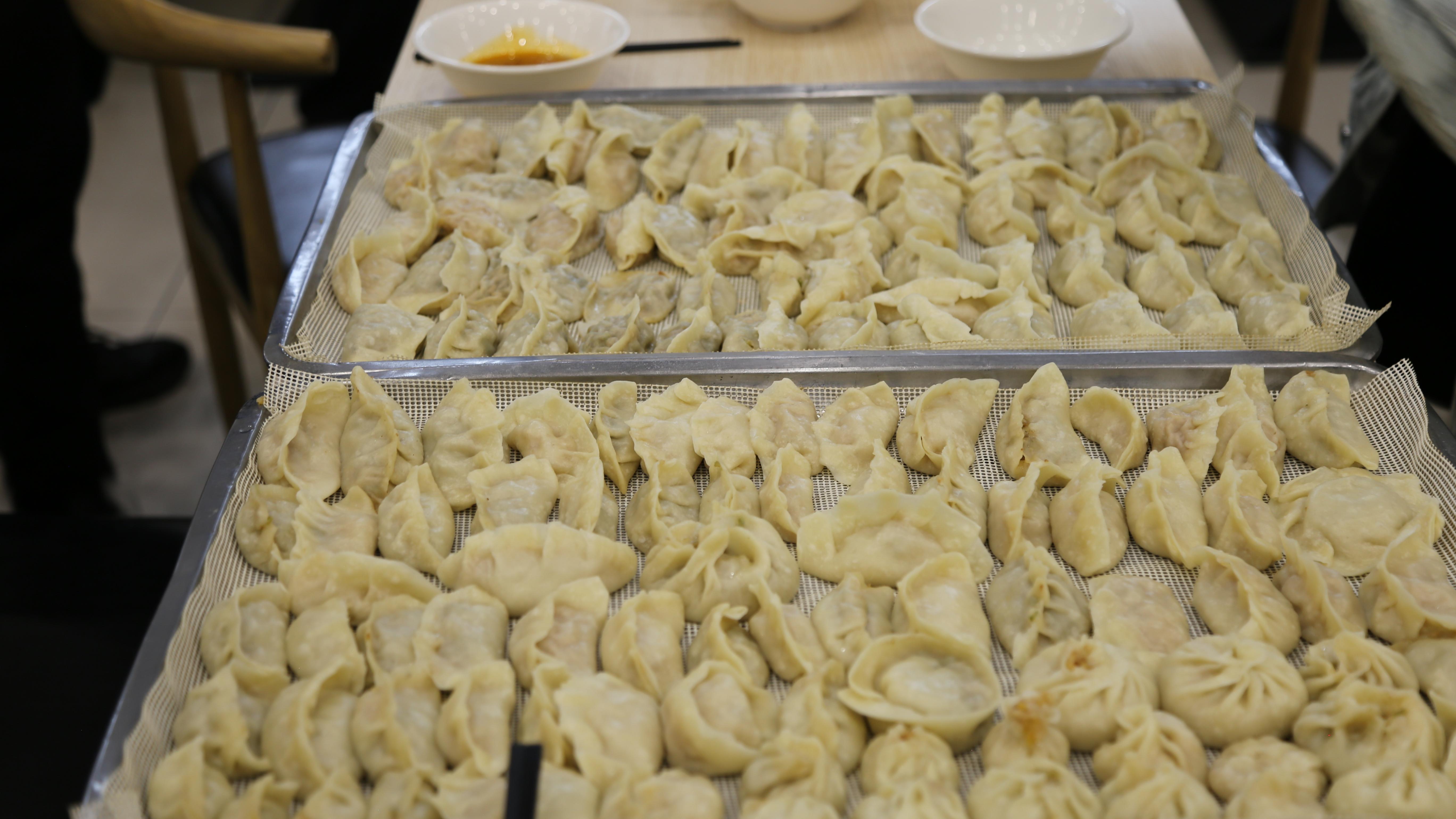 活动现场氛围轻松融洽。简短的破冰交流后,同学们迅速自由组队、明确分工,从面团搓条切剂、擀制面皮到包制馅料,有条不紊地推进这项“集体任务”。包饺子过程中,不少同学手法娴熟、动作麻利,展现出扎实的动手能力;初次尝试的同学则在餐厅工作人员与同伴的耐心指导下认真摸索,从捏合褶纹到把控馅量,逐步掌握技巧。大家包制的饺子造型多样,或饱满规整、或创意十足,欢声笑语间,彼此的距离不断拉近。待饺子新鲜出锅,同学们围坐共品劳动成果,在氤氲热气中分享美食、畅谈心声,暖意融融。