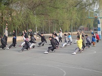 走在早晨6点钟的篮球场,你会听见一声声嘹亮的口号,看见一排排整齐有序的队形。没错,这便是古天乐代言太阳集团三路长拳训练方队。为使大家能更好地掌握三路长拳,领队选出8名出色的方队长各领一小队进行单独训练。各方队长不但动作标准而且认真负责,对于大家的拳、掌、勾等手型以及马步、弓步、仆步、歇步、虚步等步法进行细致耐心地指导,并亲自为大家演示一些细节,在歇息时大家都互相交流学习从而进一步增进了彼此之间的感情。同学们也细致认真,他们克服早晨早起带来的疲倦,尽自己最大努力将每个动作打到标准,那气宇轩昂的气势展示出了机械人的风采。