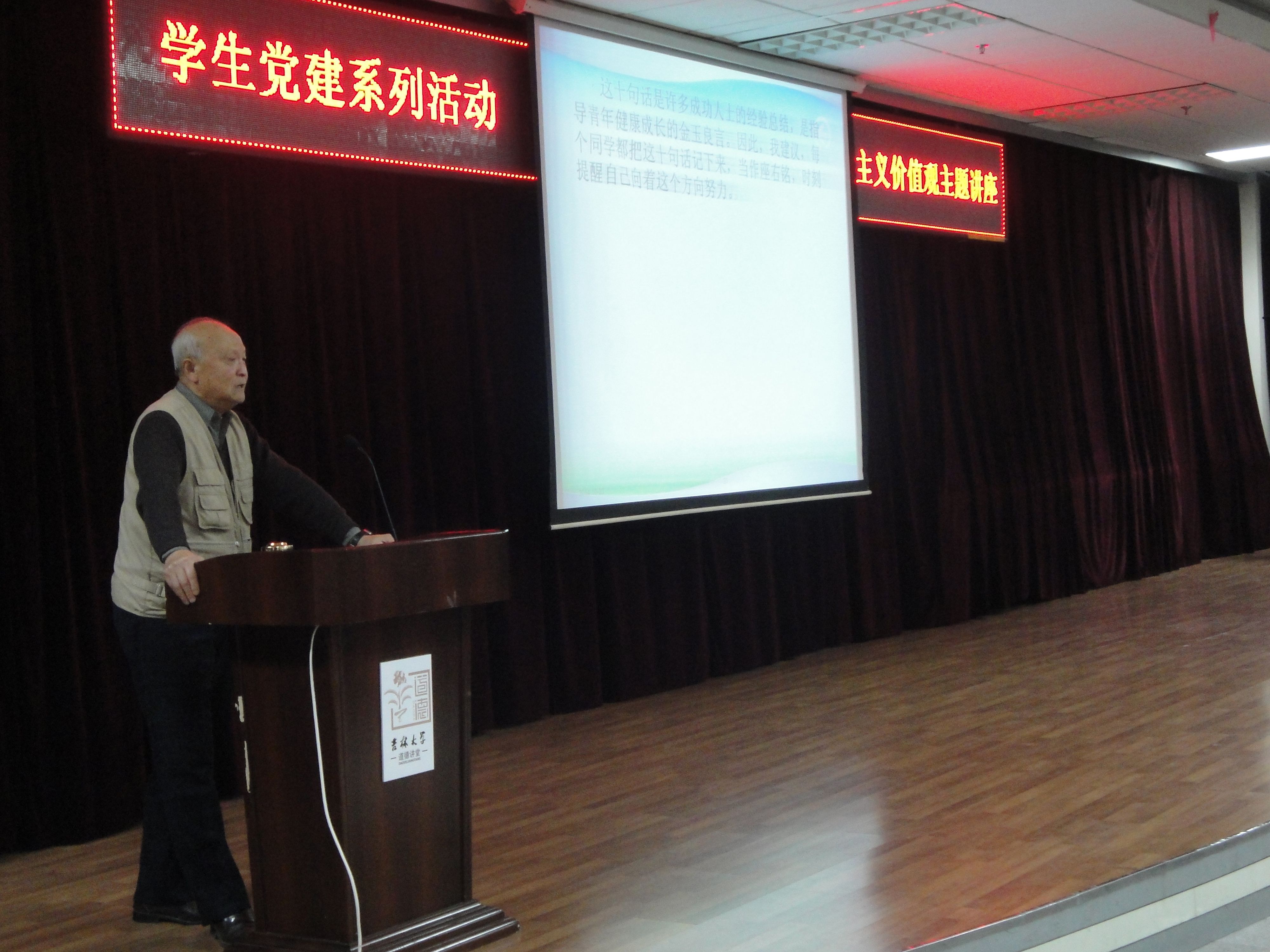 本次主题活动邀请了任纯祥教授作为主讲人,任纯祥教授向同学们介绍了本次讲座的内容与意义。在讲座中,任教授结合PPT中的要点内容,循序渐进地向大家讲解在新时期的社会主义荣辱观与价值观。他结合社会现象说明:在社会主义新时期,市场经济高速发展,物质生活变得丰富充裕,但与此同时,社会上也出现了好逸恶劳、投机懒惰、疏于奉献等错误思想价值观念。作为当代老员工,了解熟悉并树立正确的社会主义荣辱观与价值观具有重要意义。任教授在讲座的最后与现场员工进行了交流与互动,并详细认真解答了同学们提出的有关思想价值观、时事热点等相关问题。任教授希望大家认真思考自己人生价值,为“中国梦”的实现做出自己的贡献。