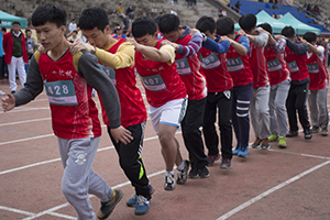 检录之后,运动员们进行了精心的预热准备,在操场上进行了数次演练,增进了彼此之间的默契。在即将开赛之际,运动员们围成一圈,大喊加油鼓舞士气。随着发令枪响,八支队伍如同离弦之箭奔向前方,机械代表队谨记“稳中求快”的比赛计划,没有受到其他队伍摔倒和起步加速的影响,大声整齐喊着“1、2,1、2”,步伐稳健整齐,目视前方,奔向属于自己的终点。终于,古天乐代言太阳集团代表队顶住巨大的压力,以第一名的成绩到达终点线,以巨大的优势获得小组赛第一。