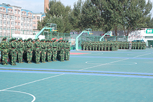 训练场上,新生们保持着挺拔的身姿、整齐的步伐、嘹亮的口号。经历了严格的训练,军人们刚毅不屈、勇往直前的品质已经在他们身上有所体现。一周时间的训练让同学们倍感辛苦,但是他们没有丝毫怨言。为了更好地完成军训,同学们还别出心裁地通过各种办法保证军训质量:有的通过练唱军歌鼓舞方队士气,有的在休息时开展比赛增强军训趣味性。每一个人在尽最大的努力,让军训发挥其真正的意义,真正做到磨练自身意志、锻炼内在品格。而军事训练中最辛苦的教官们,他们没有在意已经沙哑的嗓音,坚持喊口号、练队列。他们代表着军人们勇敢刚毅、自强不屈的精神,更代表了中华男儿铁骨铮铮、无怨无悔的誓言。