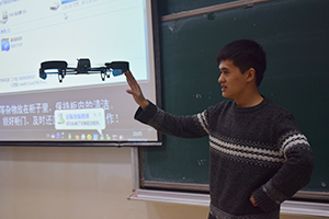 在主持人饱含激情的开场白之后,杨睿学长首先上台为同学们介绍了他的创业团队及其所开发的无人机项目,并从“由无到有”、“由有到精”两方面为同学们讲解了何为创新。他用亲身实例告诉同学们创新的重点在于满足市场需求,创新的技术要有一定的市场价值。谈及团队的创业过程,杨睿学长深有感触,团队、项目、资源——他从创业的三要素入手,为同学们深刻剖析了一个创业团队成功的必要条件,令在场的同学们受益匪浅。在演讲的最后,杨睿学长以“梦想”这一话题作结,与同学们亲切互动,鼓励大家要敢于奋斗去追逐自己的梦想,将现场气氛推向一个小高潮。之后发表演讲的电子公司2013级李明洋学长用生动风趣的语言为同学们讲述了他参加全国电子设计竞赛的曲折经历,虽历经坎坷,但初心不改;徐若兰学长则是告诫同学们做好科研工作的前提是要规划好时间,保持健康。最后,杨睿团队进行了变速多旋翼无人机现场试飞,同学们眼界大开,喝彩不断,本次分享大会在同学们热烈的掌声中完美收官。