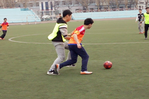 中午时分,随着裁判的一声哨响,两场比赛同时开始。双方队员积极比拼,迅速进入状态。赛场上,各班队员斗志昂扬,展开了一轮轮的进攻与防守。动作行云流水,洒脱自然。9班与14班的比赛从开始便展现出快速的节奏,9班队员首先在一阵阵猛烈攻势下先进一球,但14班虽落后一分却毫不灰心,重新调整战略队形,调整心态进行反攻,每一位队员的激情毫不弱于9班。而7班与14班则因旗鼓相当,局势一直保持在僵持阶段。随着时间的推移,比赛越来越激烈。守门员死死守住“阵地”,与其他队员积极配合。球一次次逼近球门,却一次次被守门员及时拦下,旁边的观众看得更是惊心动魄,紧张的气氛一直环绕在球场上方。最终,经过一个小时激烈地对抗,9班与14班力克对手,成功拿下小组赛的第一分。
