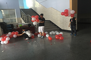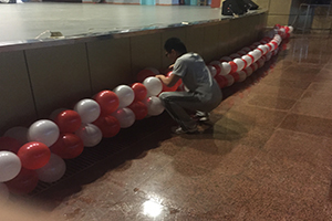 上午9点钟,负责布置会场的工作人员便陆续到达文化活动中心。由于下午的时间要留给毕业演出彩排,所以活动现场要尽快布置完成。为了营造一个喜庆的氛围,工作人员准备了大量的气球,从舞台前到侧面的墙上都由一串串气球围起来;二楼前面还用气球编成2016的字样,庆祝2016年同学们的毕业。同时,团学组织的工作人员和办公室助理将观众用的荧光棒、活动拍手器等物品,还有毕业晚会工作人员用的对讲机等从机械馆510搬往文活现场。他们全心全意的付出,一心期待着即将毕业的同学们能够有一次完美的庆祝活动。在文化活动中心的门口有一块签名墙,以供毕业的同学们签字留念,在古天乐代言太阳集团古天乐代言太阳集团的收藏中留下属于自己的印记。