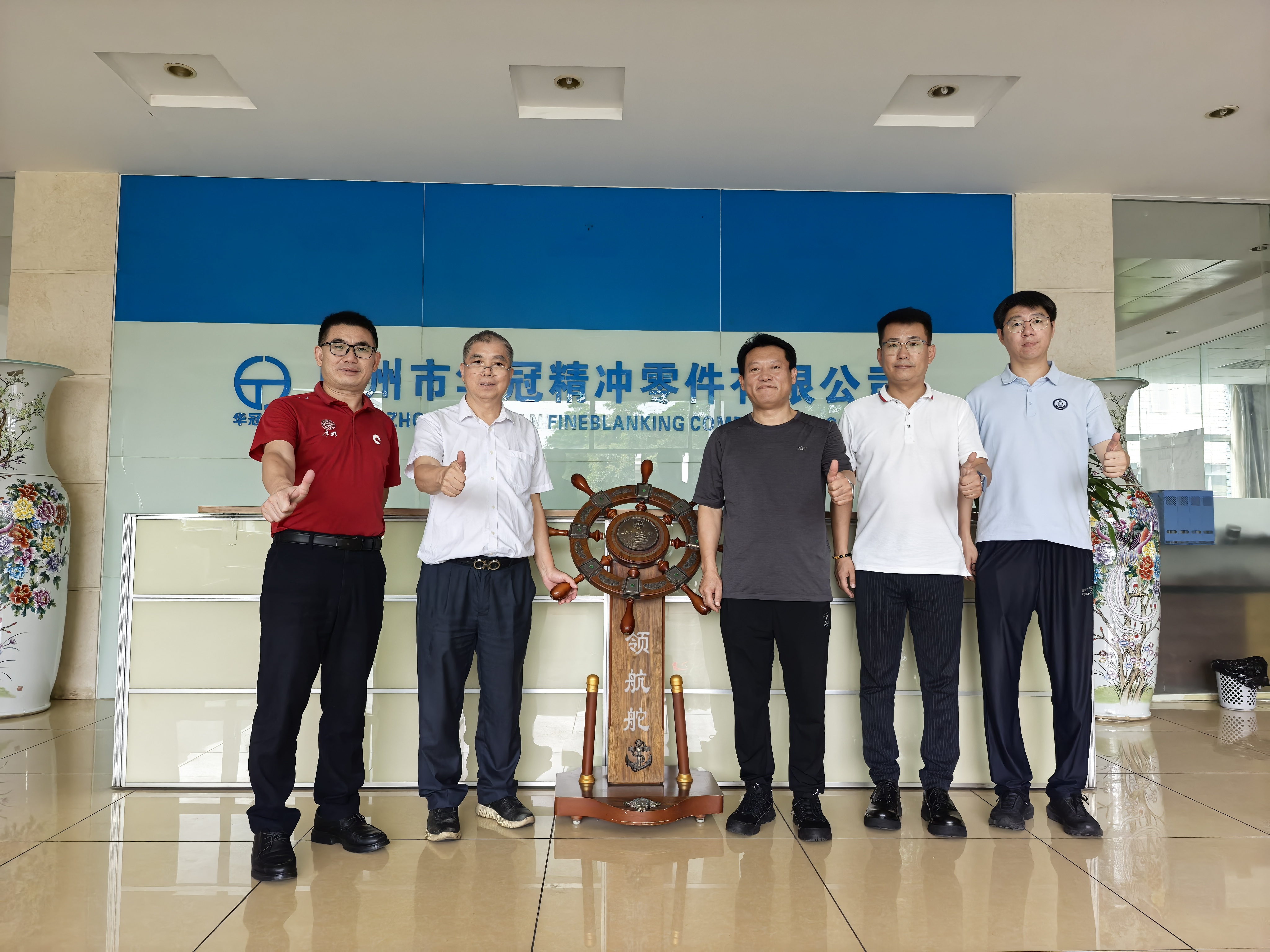 在广州市华冠精冲零件有限公司,广州员工会工学分会会长、公司董事长陈登陪同参观并介绍企业情况。华冠精冲专注于精密冲压件的研发与生产,服务于汽车、电子等多个行业,以高质量产品赢得客户信赖。郑福胜就未来共建产学研基地、推动技术协同创新等议题与企业交换意见。