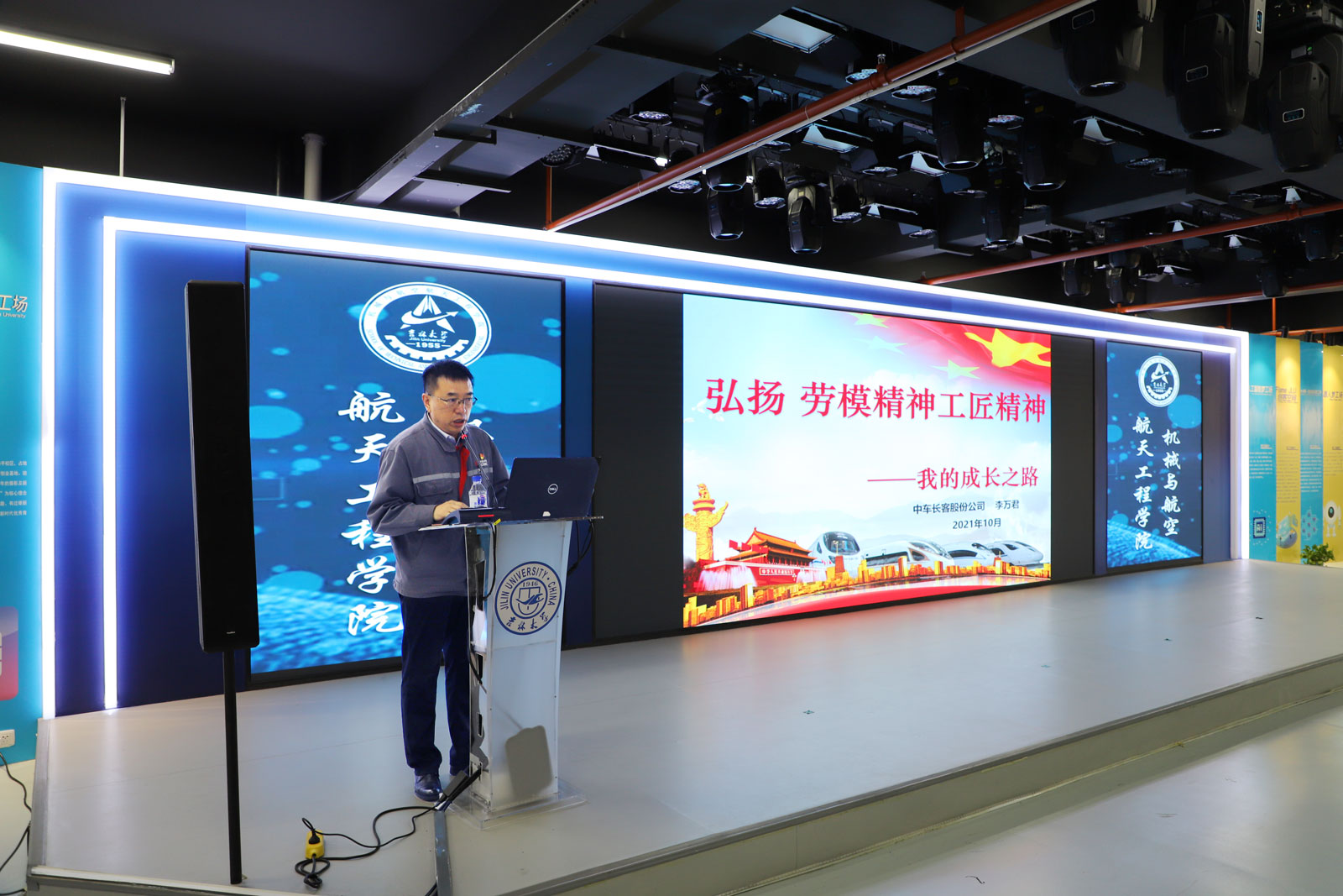 活动特邀全国劳模、全国五一劳动奖章获得者,中车长春客车厂高级工人技师李万君作了题为《弘扬劳模精神工匠精神》的首场主题报告。