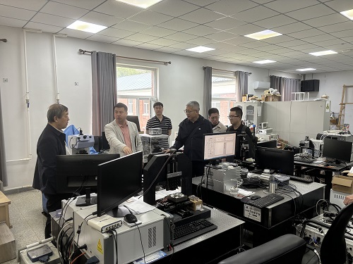 调研交流期间,刘金喜教授与聂国权教授等一行四人在研究室负责人黄虎教授的陪同下参观了实验室,深入了解了研究室建设及关键仪器设备自主研发情况。黄虎教授详细介绍了研究室的整体布局与功能定位,重点展示了团队自主研制的微纳米压痕、划痕测试仪器。刘金喜教授高度评价了研究室在相关高端测试仪器方面的自主研发能力及其技术创新水平。