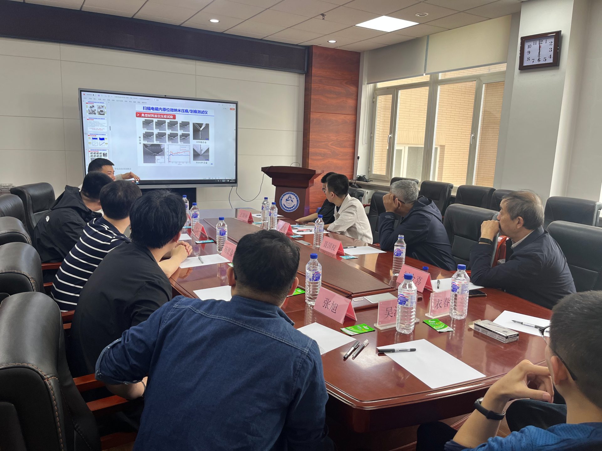 参观结束后,双方举行了专题交流座谈会。黄虎教授对刘金喜教授一行表示热烈欢迎,并全面介绍了研究室在材料微观力学性能测试技术与仪器自主研发方面取得的研究进展。刘金喜教授也结合自身团队的研究经验进行了深入分享,特别是关于压痕/划痕测试技术在理论建模与工程应用中的关键问题分析,引发了在场青年学者的强烈共鸣,现场互动频繁,学术氛围热烈。刘金喜教授指出,双方在材料微观力学性能测试技术领域具有高度契合的研究方向,未来应在关键技术攻关、仪器标准化建设及产学研协同创新等方面加强合作,共同推动材料力学性能表征技术向更高水平层次发展。此次交流有效促进了双方在科研理念与技术路径上的深度对接,为未来开展实质性合作奠定了良好基础。