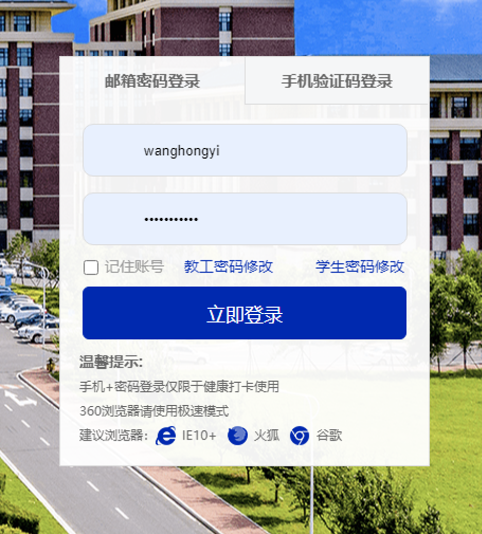 登录账号密码分别为个人吉大邮箱账号与密码,点击进入登录界面: